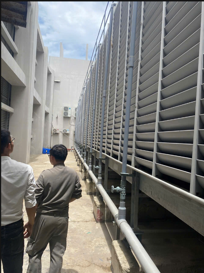 - Bảo dưỡng dàn ngưng tụ (dàn nóng): Vệ sinh bề mặt trao đổi nhiệt, loại bỏ cặn bẩn, rong rêu. Kiểm tra vòi phun nước, xả dầu tích tụ. Vệ sinh bể nước, xả cặn. Định kỳ bảo dưỡng thường là 3 tháng/lần.